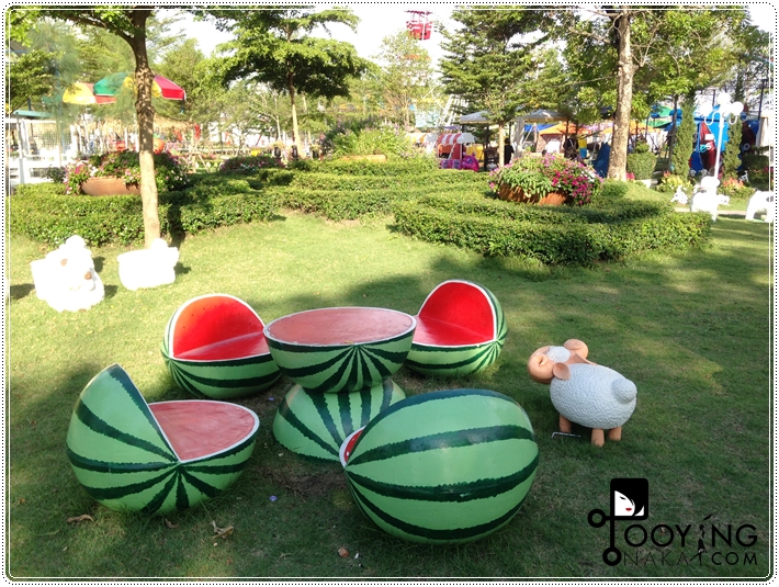 ส่วนของร้านอาหารจะมีสองฝั่งค่ะ ฝั่งที่ติดกับสวนสนุกกับฝั่งที่ติดสระน้ำ ตอนเย็นๆเมื่อแดดร่มลมตกแล้ว ฝั่งติดสระน้ำจะอากาศดีมากๆ