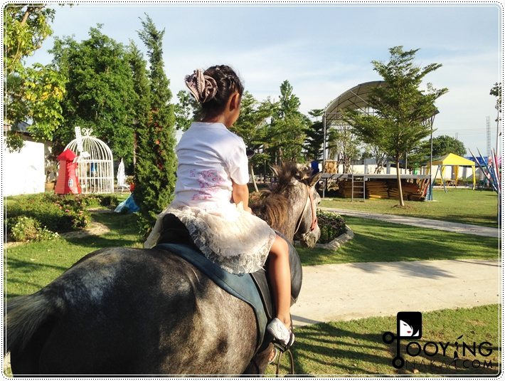 ก่อนจะไปนั่งชิงช้าสวรรค์ขอพาลูกไปขี่ม้าก่อนค่ะ จะเป็นครั้งแรกที่ได้ขี่ม้า เพราะกลัวมากๆ ขี่ม้า 40 บาทค่ะ รอบสวนค่ะ