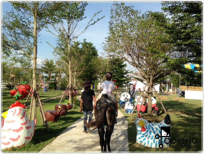 ที่จอดรถเยอะค่ะ ฉะนั้นไม่ต้องห่วงเรื่องหาที่จอด เมื่อจอดรถเสร็จ ลงจากรถ รับรองเด็กๆจะตื่นเต้นเมื่อมองเข้าไป ทางเข้าเป็นเหมือนเราเดินเข้าไปในฟาร์ม