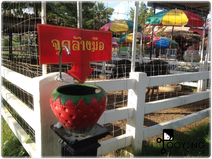 มาถึงโซนให้อาหารสัตว์จะมีจุดล้างมืออยู่ด้านหน้าค่ะ อ่างน่ารักมากๆเป็นสตรอเบอร์รี่