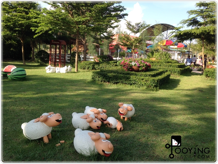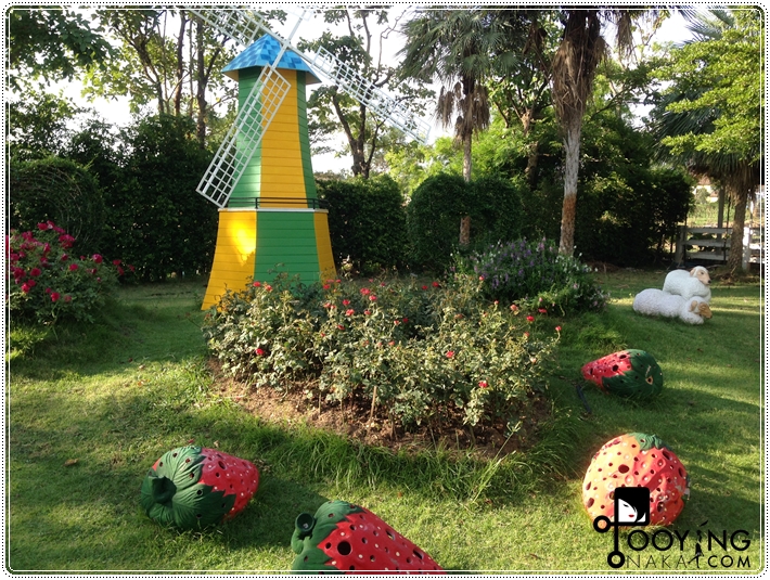 ด้านหน้าจะเห็นกังหันและแกะตัวใหญ่ๆนั่งเล่น นอนเล่น เดินเล่น อยู่ค่ะ