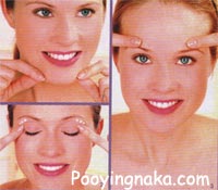 2. นวดหนังตา ก่อนนวดต้องทาครีมสำหรับรอบดวงตาโดยเฉพาะบริเวณหนังตาเสียก่อน