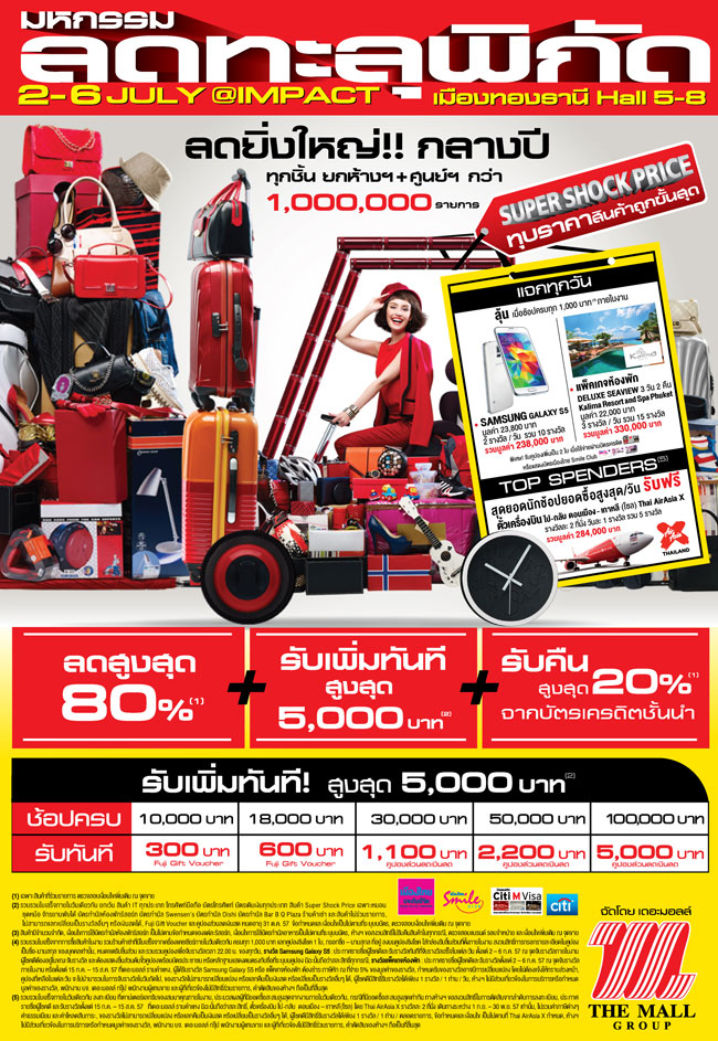 พลาดไม่ได้กับสินค้าคุณภาพราคาสุดคุ้ม ในงาน มหกรรมลดทะลุพิกัด ระหว่างวันที่ 2 6 กรกฎาคม 2557 ที่ เอ็กซิบิชั่น ฮอลล์ 5 8 อิมแพค เมืองทองธานี
