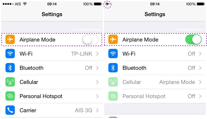 หากเป็นช่วงเวลาที่เราก็ไม่อยากให้ใครรบกวน หรือคิดว่าเป็นช่วงที่เราอยากอยู่เงียบๆ ใช้เวลาเพียงไม่กี่วินาทีเปลี่ยนโทรศัพท์เราให้อยู่ใน Airplane Mode ซึ่งโหมดนี้จะปิดทุกอย่างที่จะไปรบกวนการบิน และจริงๆแล้วการเปิดโหมดนี้ยังช่วยประหยัดแบตเตอรี่เราได้ด้วย (โหมดนี้จะปิด Wi-Fi, GPS, Bluetooth, Location) เพียงเราเข้าไปที่ Setting > Airplane Mode ก็เสร็จแล้วค่ะ เมื่อเราจะใช้งาน ก็แค่เปิดกลับมาเท่านั้นเองค่ะ