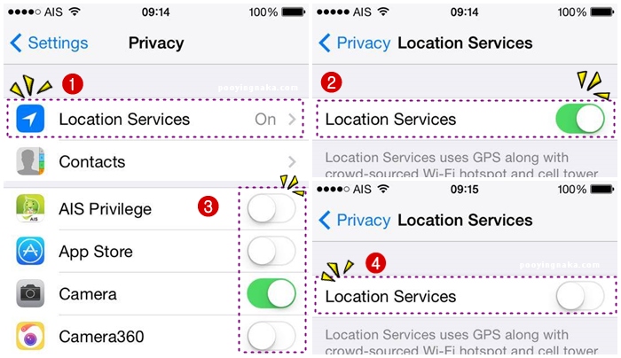 4. ปิด Location Services