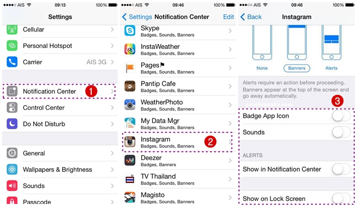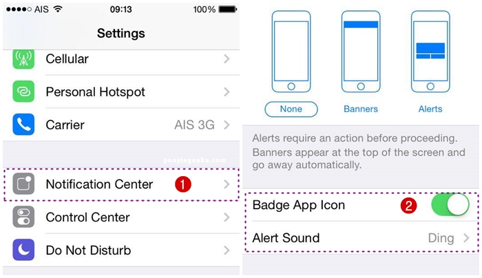 คิดให้ดีๆนะคะเวลาที่เราโหลดแอพอะไรมาแล้วเราอนุญาตให้ส่งการแจ้งเตือนเข้ามาได้ หลายแอพแจ้งเตือนบ่อยๆก็ทำให้แบตเตอรี่เราลดลงโดยไม่จำเป็นค่ะ ให้ลองเข้าไปดูว่าเราอยากจะให้แอพไหนที่แจ้งเตือนและแอพไหนไม่จำเป็น เข้าไปที่ Setting > Notification Center > เลื่อนลงมาดูแล้วกดเข้าไปแต่ละแอพที่อยากจะปิดการแจ้งเตือนค่ะ