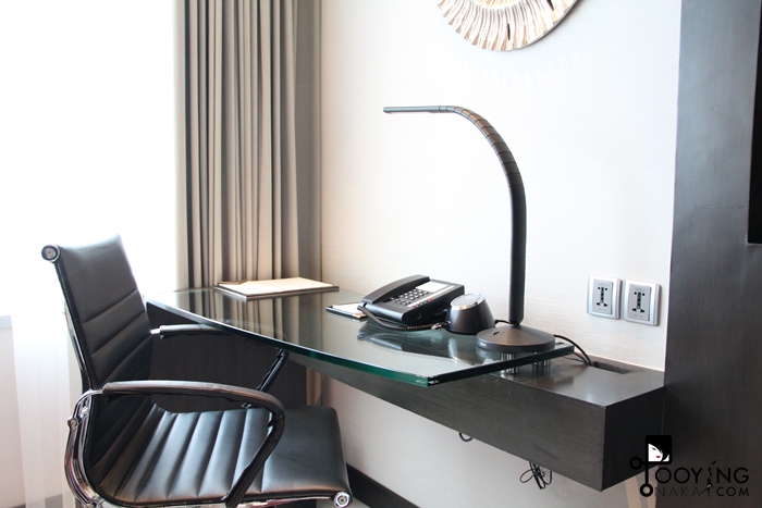 โทรทัศน์และมุมทำงาน บอกเลยว่าไม่มีโอกาสได้ดูทีวีเลยค่ะ เพราะกว่าจะกลับเข้าห้องก็ดึกแล้ว ฮ่าๆ แต่เราสามารถดึงออกมาได้นะคะ มีขายึดค่ะ