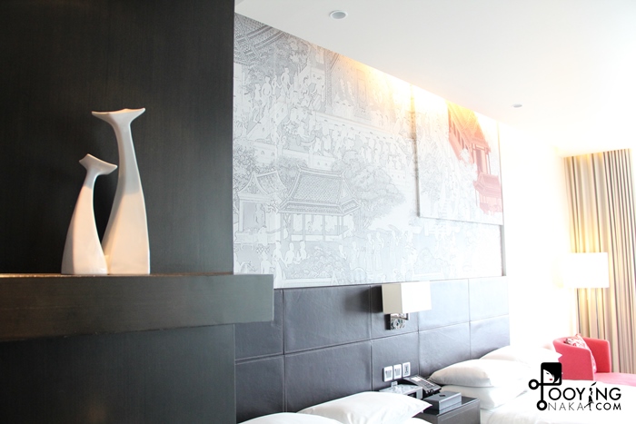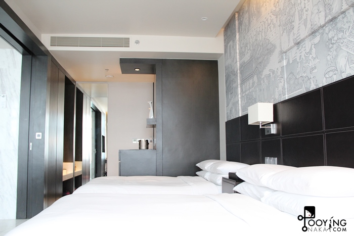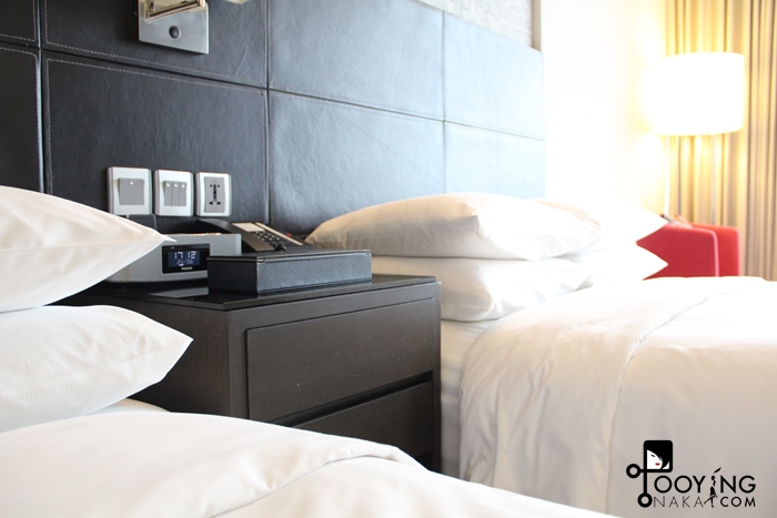 เตียงคู่ แต่ว่าแต่ละเตียงนี่ใหญ่มากๆ หมอนนิ่ม ที่นอนนิ่มกำลังดีเลยค่ะ นอนแล้วไม่ปวดหลัง บรรยากาศห้องดีมากๆ มองเห็นวิวกรุงเทพด้วยค่ะ