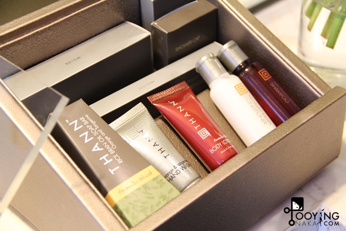 ผลิตภัณฑ์ของ Thann จะอยู่ในกล่องหนัง พร้อมกับหมวกอาบน้ำ แปรงสีฟันและยาสีฟัน มีดโกนหนวด(ซึ่งนกว่ามันไม่ค่อยคมเลยค่ะ)