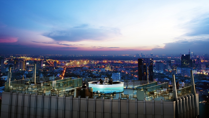 บาร์บนชั้นดาดฟ้าสุดฮิป ได้รับการตกแต่งแบบร่วมสมัยและแบ่งพื้นที่ออกเป็น 4 ชั้น ให้บริการอาหารทานเล่นทั้งแบบยุโรปและเอเชีย มีเครื่องดื่มและค็อกเทลให้เลือกมากมาย นอกจากนี้ยังมีเลาจน์ขนาดย่อม สำหรับงานเลี้ยงหรือสำหรับมื้ออาหารแบบเป็นส่วนตัวให้คุณได้ดื่มด่ำไปกับเสียงเพลงและสีสันของกรุงเทพ ยามค่ำคืนด้วยทิวทัศน์แบบ 360 องศา