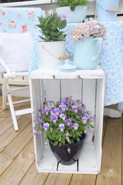 เอาลังวางตั้งขึ้นค่ะ จะวางกระถางได้หลายใบมากขึ้น ถ้าอยากได้ความเป็นวิจเทจให้ลงสีค่ะ
