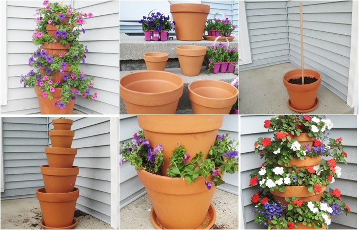 เลือกกระถางหลายๆขนาดเพื่อวางซ้อนกันแบบไล่ระดับค่ะ เราจะได้พุ่มไม้หรือพุ่มดอกไม้ที่สวยงาม ประหยัดพื้นที่มากๆ