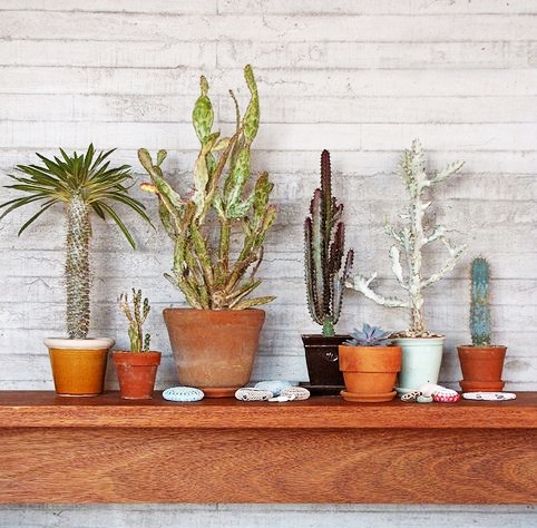 ถ้าไม่ค่อยมีเวลารดน้ำจริงๆ ให้ติดชั้นที่ข้างผนัง แล้วเลือกกระบองเพชรที่เราชอบมาวางเรียงเลยค่ะ