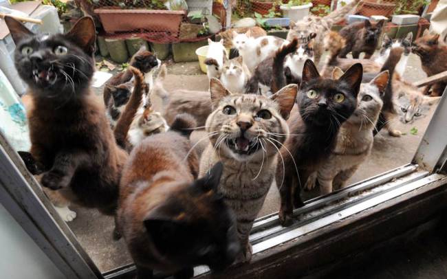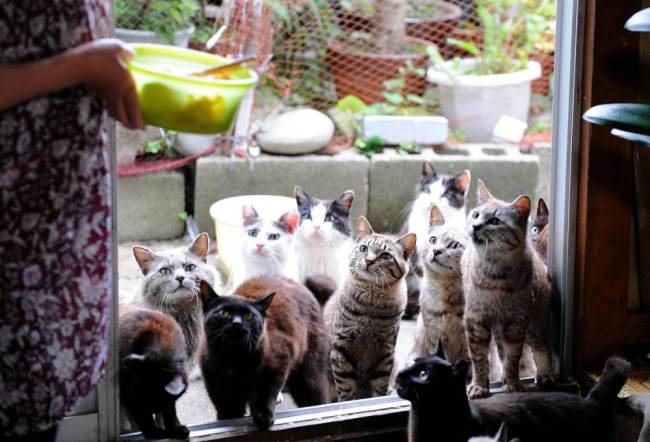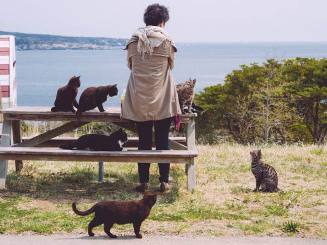 Aoshima island (青島), Ehime, เกาะแห่งนี้มีชื่อเสียงมากและเป็นอีกสถานที่หนึ่งที่คนรักแมวอยากจะไป เกาะแห่งนี้มีประชากรแมวมากกว่าผู้คนเสียอีกค่ะ โดยมีประมาณ 15 คน (อายุระหว่าง 50-80 ปี) กับแมวอีกกว่า 100 ตัว เกาะแห่งนี้ไม่มีโรงแรม ไม่มีร้านอาหารหรือแม้แต่เวนดิ้งต่างๆ