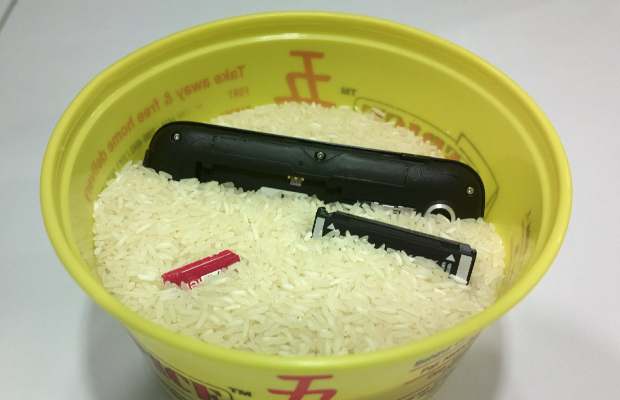 เมื่อเราทำมาถึงตรงนี้ เพื่อเพิ่มความมั่นใจว่าเราจะเอาความชื้นทั้งหมดออกจากโทรศัพท์เราได้ ให้เอาโทรศัพท์ของเราไปแช่ในถังข้าวสาร ทิ้งไว้อย่างน้อยๆ 24 ชั่วโมง เพื่อให้ข้าวดูดซับเอาความชื้นภายในออกค่ะ