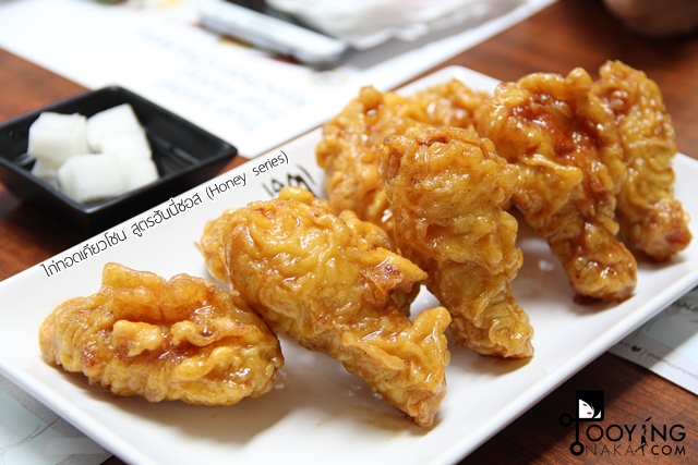 จานที่สอง ไก่ทอดเคียวโชน สูตรฮันนี่ซอส (Honey series) จานนี้จะมีรสหวานจากน้ำผึ้งแท้จากเกาหลีค่ะ ตัวแป้งจะกรอบมาก