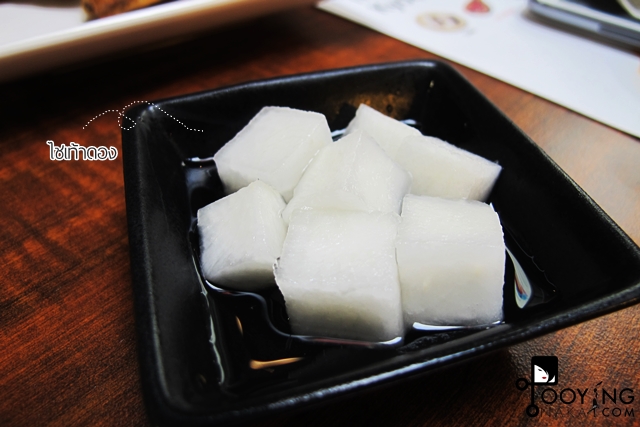 ไชเท้าดองจะมีมาให้กับไก่ทอดเคียวโชน สูตรฮันนี่ซอส รสเปรี้ยวนิดๆหวานหน่อยๆ แต่กรอบมาก ทานแล้วสดชื่นมากค่ะ