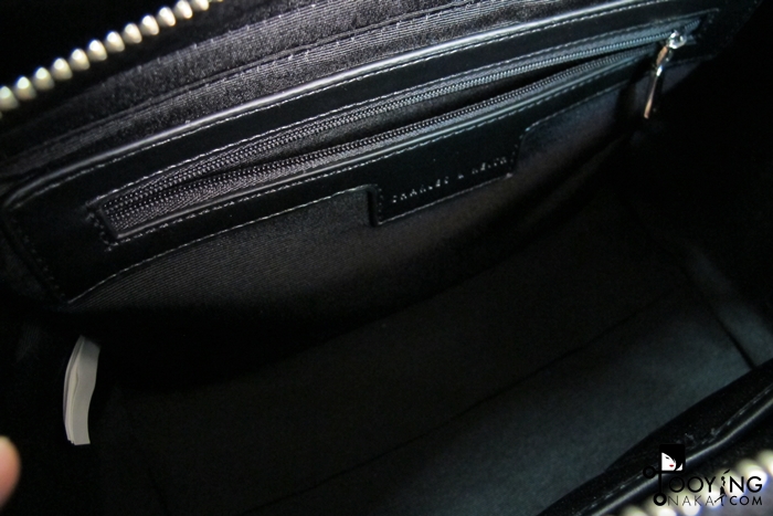มาดูข้างในกันบ้าง แหมกระเป๋าสีดำ กล้องก็ถ่ายออกมาชัดเหลือเกินนะเนี่ยมองแทบไม่เห็น อย่างที่บอกไปแล้วว่าเป็นไซส์ M บอกเลยใบใหญ่ และด้านข้างก็มีซิป อีกด้านหนึ่งไว้ใส่มือถือ ตลับแป้งหรืออะไรก็ว่ากันไป ด้วยความที่กระเป๋าใบใหญ่ เลยต้องหาถุงผ้าเล็กๆมาแยกของไม่งั้นหาของไม่เจอค่ะ อิอิ