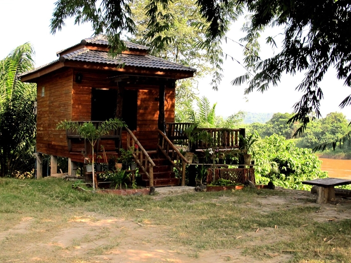 รีสอร์ท ติดริมน้ำโขง มีห้องพักอยู่ 8 หลัง มีเครื่องทำน้ำอุ่น แอร์  ทีวี กล่องสัญญาณGMM-Z  Wifi