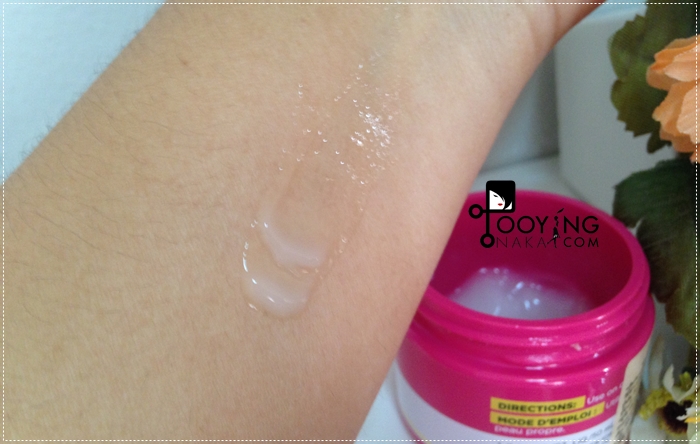 ลองทาที่แขนให้ดูค่ะ เป็นเจลแบบขุ่นนิดๆค่ะ ตอนทาจะเย็นนิดๆเพราะเนื้อเจลแล้วอยู่ในห้องแอร์ด้วย