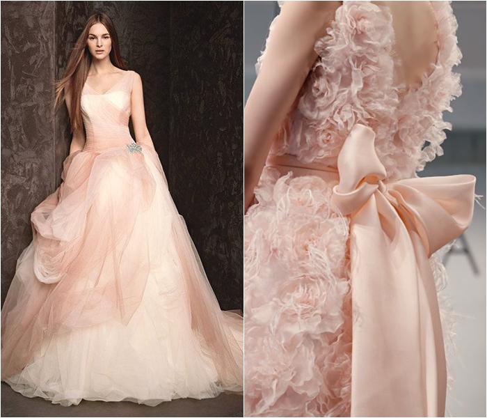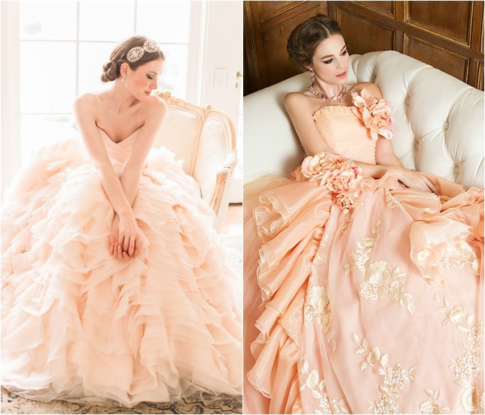 นอกจากสีขาวแล้ว ชุดแต่งงานสีพีชก็ดูอบอุ่นและสวยหวานได้เช่นกัน เหมาะกับเจ้าสาวทุกคนด้วยค่ะ