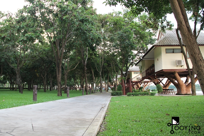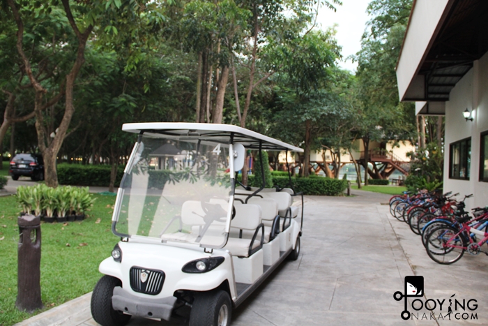 ที่นี่มีบ้านพักหลายแบบด้วยกันนะคะ และที่พักจะเป็นทางเดินยาวแบบนี้ ถ้าพักไกลสามารถนั่งรถกอล์ฟไปได้ค่ะ เพราะไกลมากๆ