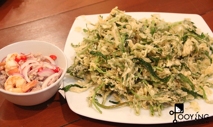 ยำผักบุ้งทอดกรอบ ให้ผักบุ้งมาเยอะมากๆ แต่ฉ่ำน้ำมันไปนิดค่ะ