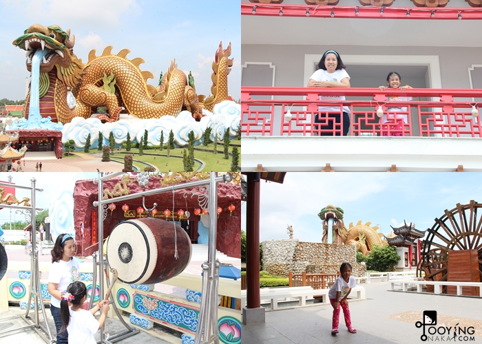 ไม่ไกลกันนักเราเดินทางต่อไปยัง อุทยานมังกรสวรรค์ แม้อากาศจะดูร้อน แต่ข้างในที่จัดไว้อย่างดีมีทั้งร้านค้าร้านอาหารสำหรับคนไปทำบุญไหว้พระ มีหอคอยที่เราต้องเดินบันไดขึ้นไปแล้วจะเห็นวิวที่สวยงามมากและลมพัดเย็นสบาย