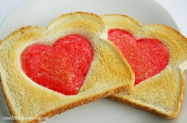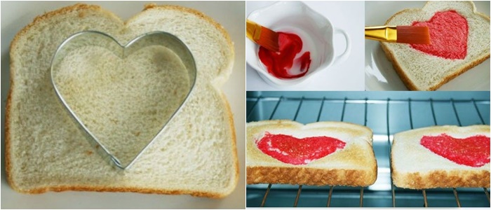 วิธีทำแค่เพียงใช้ที่ตัดคุกกี้รูปหัวใจกดลงไปบนขนมปัง แล้วนำสีผสมอาหารสีแดงมาทาหัวใจ จากนั้นนำไปปิ้ง เสิร์ฟตั้งแต่ตื่นพร้อมกาแฟหรือนมอุ่นๆ