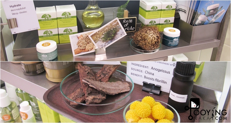 และชั้นวาง แสดงให้เห็นถึงการทุ่มเทในการเสาะแสวงหาส่วนผสมนับพันชนิด รวมทั้งมุม Powerful Plants เรื่องราวจากการค้นพบอันยิ่งใหญ่ในพลังธรรมชาติสู่ผลิตภัณฑ์ออริจินส์ ที่ใส่ใจในทุกขั้นตอนอย่างละเอียด