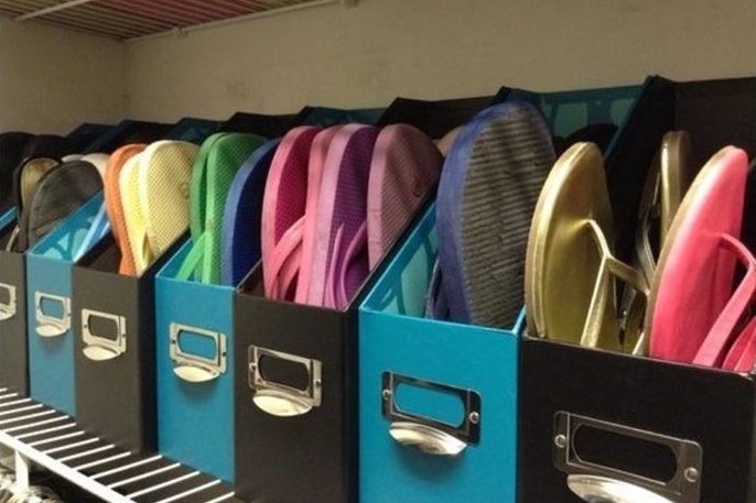 ที่บ้านไหนมีคนอยู่เยอะมีรองเท้าแตะอยู่หลายคู่ เก็บเป็นระเบียบในตู้รองเท้าก็จับแต่ละคู่ใส่เข้าไป อาจจะมีชื่อแปะที่กล่องด้วยก็ได้ค่ะ