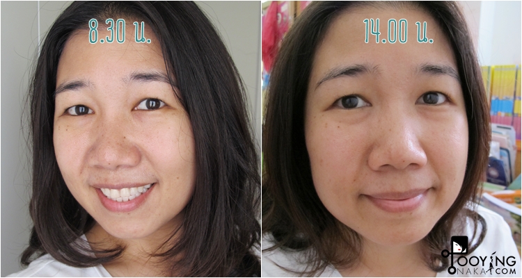 ทั้งวันไม่ได้อยู่ห้องแอร์เลยนะคะ ออกข้างนอกตะลุยบ้าง นั่งรถเปิดแอร์ประมาณชั่วโมงนึงแต่แดดก็แรงมากๆ หน้าไม่มันค่ะ ในวันที่ถ่ายรูปทำรีวิวนกไม่ทาแป้งทับนะคะ หน้าอาจจะเงาขึ้นแต่ไม่มันค่ะ ถ้าใครชอบซับมันก็ให้ซับแล้วลงแป้งตาม