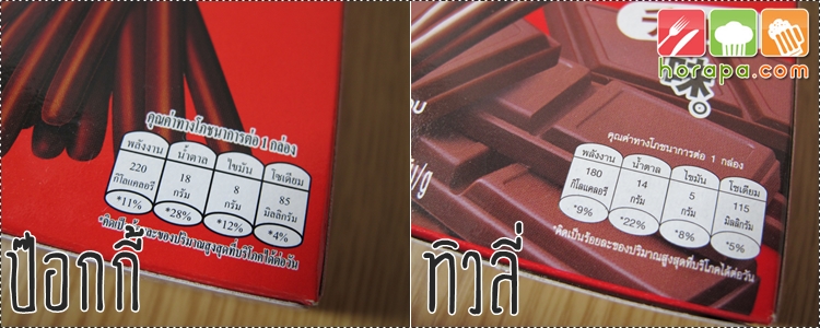ดูเหมือนป๊อกกี้จะมีทั้งพลังงาน, น้ำตาลและไขมันที่มากกว่า แต่โซเดียมน้อยกว่า