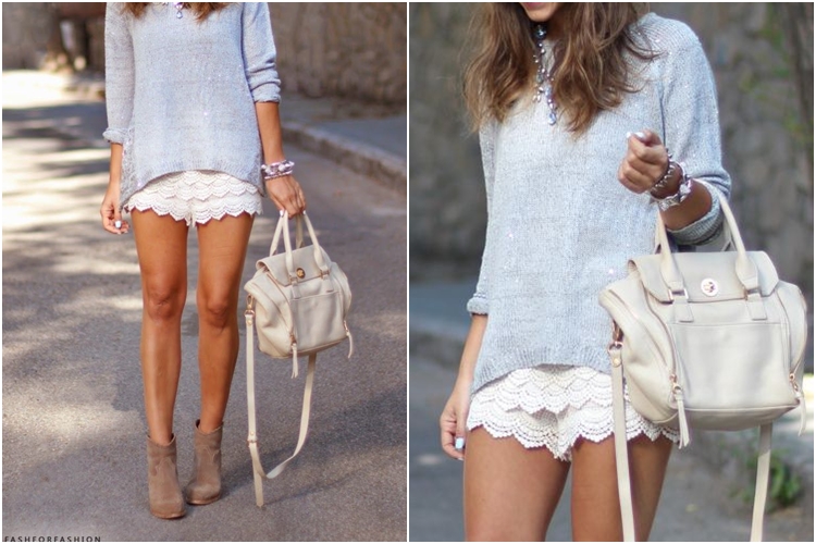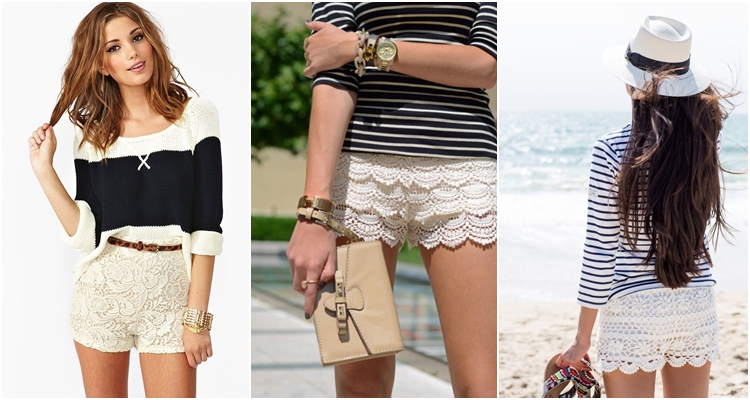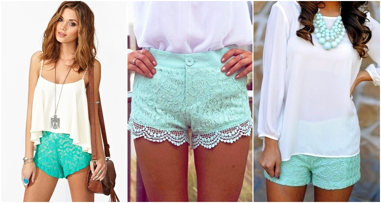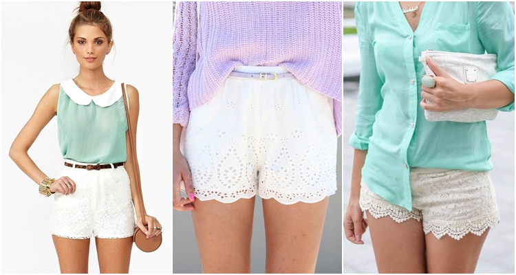กางเกงขาสั้นแบบลูกไม้ทำให้ผู้หญิงดูเป็นผู้หญิงมากขึ้น กางเกงขาสั้นสีขาว จับคู่กับเสื้อโทนสีพาสเทล ทำให้ดูเย็นตาอีกด้วย