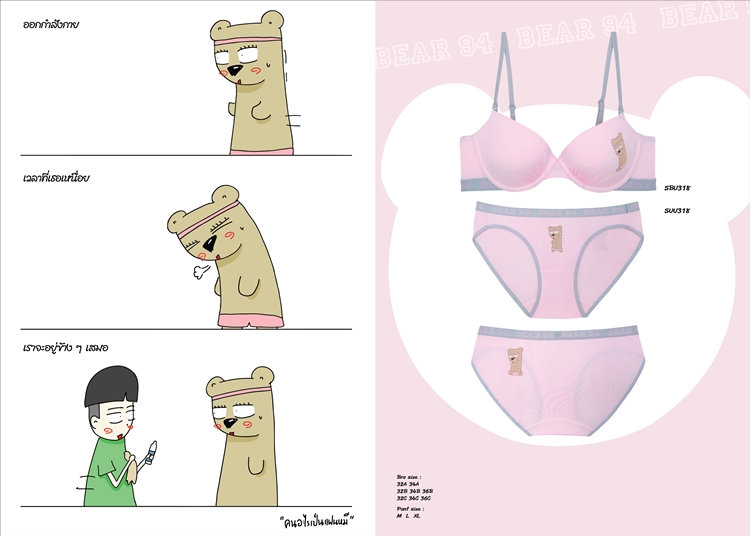 ซาบีน่า พริตตี้ เพอร์เฟค คนอะไรเป็นแฟนหมี มีลวดลายให้เลือกสรร 8 ลวดลาย พร้อมกางเกงชั้นในเข้าชุด อาทิ ลายหมีออกกำลังกาย ลายหมีผ้าห่ม มีวางจำหน่ายแล้ว ทั้งรูปแบบบรามีโครง และไม่มีโครง ราคา 640-690 บาท กางเกงใน 220 บาท ที่ซาบีน่าช้อป และเคาน์เตอร์ซาบีน่าในห้างสรรพสินค้าชั้นนำทั่วประเทศ หรือช่องทางของ สาวๆนักช้อปออนไลน์ที่ www.sabina.co.th