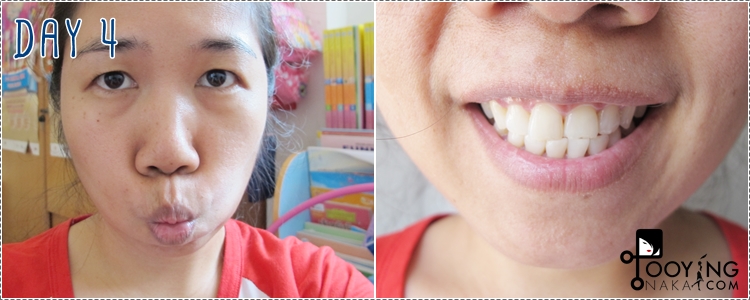 จะเห็นสีฟันที่ขาวขึ้นละค่ะ แต่ยังไม่เยอะเท่าไร จะบอกว่าครอบฟันแบบนี้เหมือนเราทำโยคะหน้าเลยนะจ๊ะ