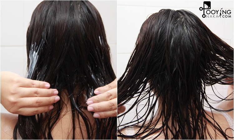 นกจะลงครีมนวดผมช่วงกลางๆเส้นผมลูบลงมาจนปลายผม ถ้าเหลือๆติดมือบ้างก็จะไปนวดๆบริเวณโคนผมค่ะ แต่ไม่ค่อยเน้นโคนผมเท่าไรค่ะ