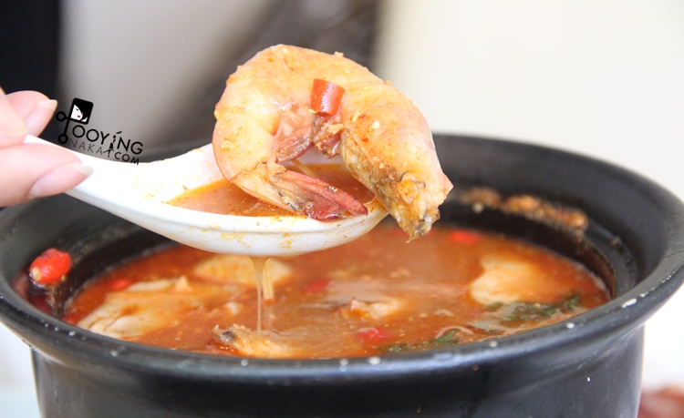 ต้มยำกุ้งทะเลสูตรน้ำพริกเผาสีฟ้า