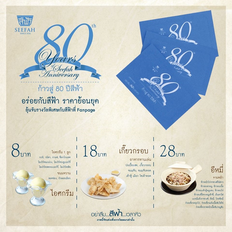 และอีก 20 รางวัล มีคูปองสำหรับเป็นส่วนลดอาหารตามโปรโมชั่นฉลอง 80 ปีของสีฟ้าค่ะ