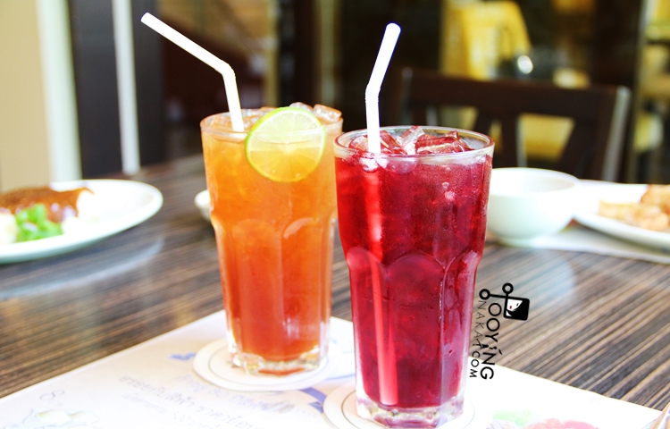 เราสั่ง ชามะนาวเย็น-น้ำผึ้งเชียงแสน กับน้ำกระเจี๊ยบมาดื่มค่ะ จริงๆยังมีน้ำมะตูมอีกแก้วนะคะ