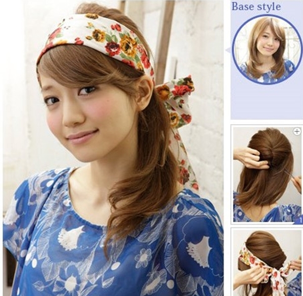 ทรงแรก ควรมีผ้าผูกผมลายดอกไม้สวยๆหรือใช้ผ้าพันคอสีสันสดใสก็ได้