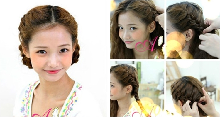 ทรงนี้เหมาะกับสาวผมยาว ให้ถักเปียทั้งสองข้าง เมื่อถักเปียเสร็จแล้วให้เก็บปลายผมเปีย