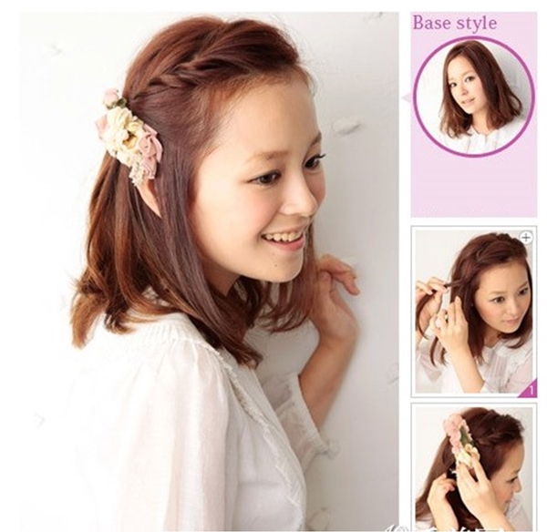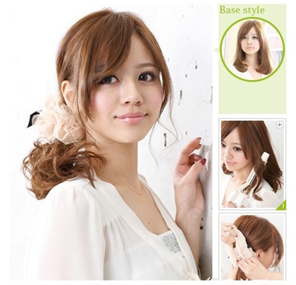 ให้ถักเปียหลวมๆปาาดไปด้านใดด้านหนึ่ง แล้วติดกิ๊ปตัวใหญ่ให้แน่น