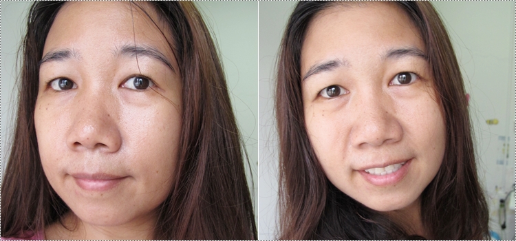 ด้านซ้ายคือใช้ผลิตภัณฑ์ทั้งเซทที่มีแล้วค่ะ หน้าจะเงาจริงๆ ด้านขวาคือทาแป้งเด็กค่ะ ใสๆเนาะ ไม่ต้องหนักหน้า