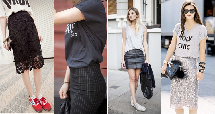 ลุคที่สาม กระโปรงทรงดินสอกับเสื้อยืด/เชิร์ต