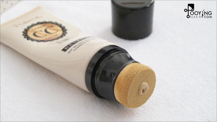 เมื่อปิดฝากลับลงไปแบบเดิมแล้ว ให้ดึงฝาออกก็จะเจอฟองน้ำเนื้อนุ่มๆหนาๆค่ะ สำหรับเกลี่ย CC ของเรา
