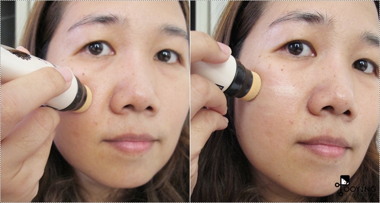 Tips: หากมีรูขุมขนกว้าง หรือ รอยแดงสิว ที่ต้องการการปกปิดเป็นพิเศษ ให้กดฟองน้ำในจุดนั้นซ้ำๆเพื่อการปกปิดที่ดียิ่งขึ้น