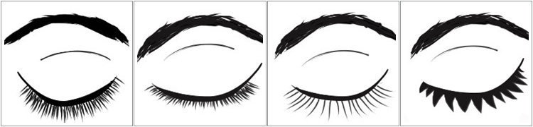 แบบที่ 1 ขนตายาวแต่ตรงและทิ่มลง    แบบที่ 2 ขนตาสั้น               แบบที่ 3 ขนตายาวแต่ไม่หนา           แบบที่ 4 ขนตาหนาแต่ไม่แผ่เป็นเส้น