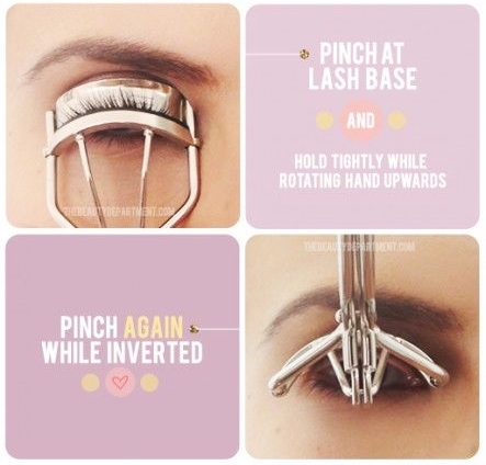 ให้โคนขนตาสัมผัสกับที่ดัดขนตาแล้วค่อยๆกดพร้อมกับยกมือขึ้นทีละนิด