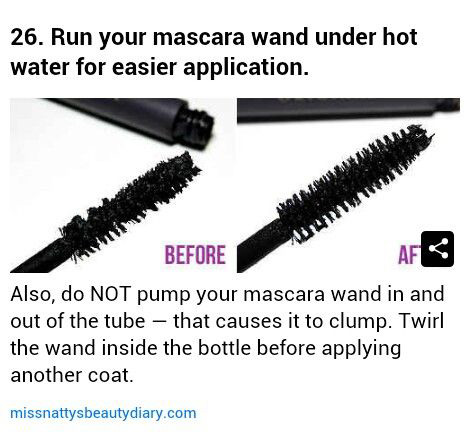 แปรงมาสคาร่าที่เหนอะและเป็นก้อน จะปัดขนตาได้ไม่สวย ให้นำน้ำร้อนราดลงไปเบาๆเพื่อให้ก้อนมาสคาร่าหลุดออก